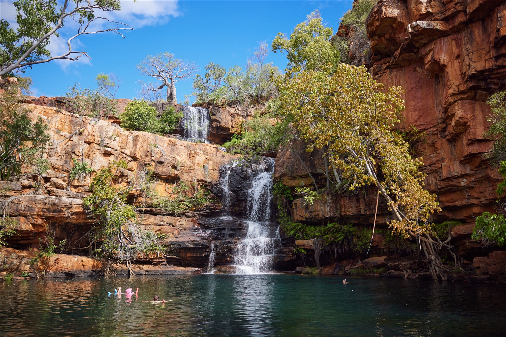 Despite being smaller than some Kimberley gorges, the pool is perfect for a refreshing dip. A rope swing and natural massage from the falls add to the experience. Make sure to come prepared for this memorable Kimberley adventure.